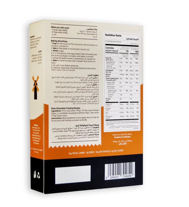 Ingredients: Almond flour, cacao powder, xanthan gum, erythritol, coconut flour, baking powder (Sodium Acid Pyrophosphate, Sodium Bicarbonate, Cornstarch, Monocalcium Phosphate), sea salt.