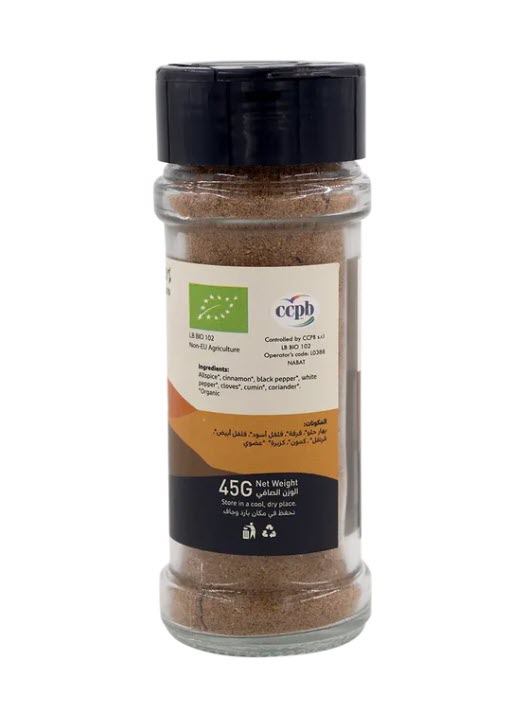 Organic 7 spices mix is a flavorful blend of carefully selected spices, designed to enhance a variety of dishes with its aromatic and complex taste. Featuring organic allspice, cinnamon, black pepper, white pepper, cloves, cumin, and coriander, this versatile mix is perfect for seasoning meats, vegetables, and grains. Free from artificial additives and preservatives, organic 7 spices mix offers a natural way to elevate your cooking, adding depth and warmth to both savory and sweet recipes.